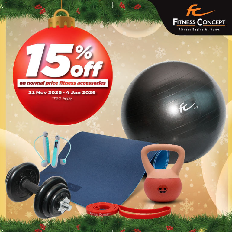 Make this season both merry & healthy. Enjoy 15% OFF fitness accessories at Fitness Concept from 21 Nov 25 - 4 Jan 26