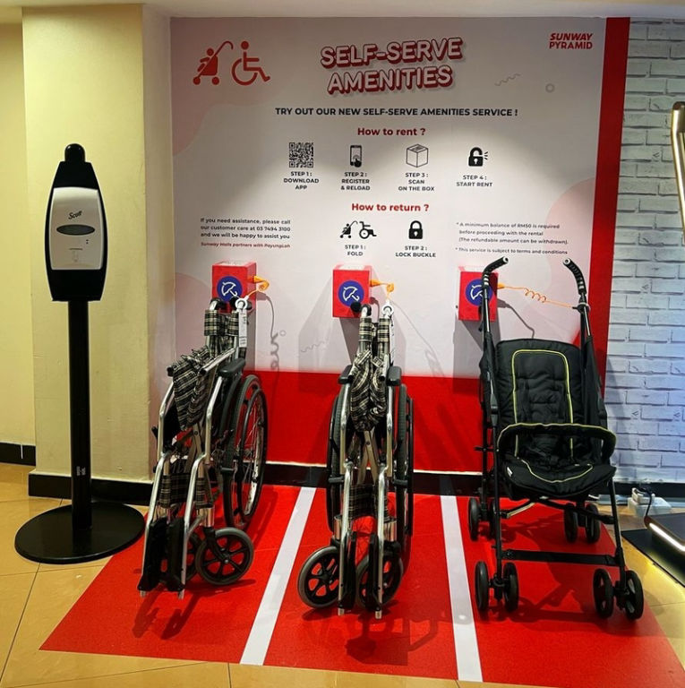 Need a stroller or wheelchair? No need to walk all the way to the Main Concierge — just head to our Self-Serve Kiosk at Parking Lobby A, CP3 (Orange Zone)! No queues, no waiting — just scan, tap, and borrow