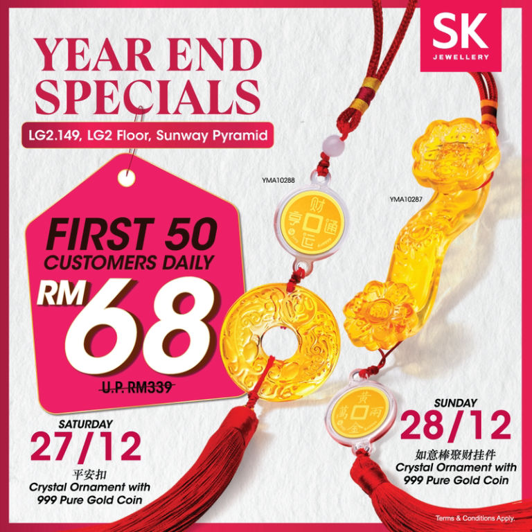 🎉 Year End Specials🎉 RM68 (U.P. RM339) for Crystal Ornament with 999 Pure Gold Coin for first 50 customers daily! 📅 27 Dec (Sat): Ping An Kou Crystal Ornament with 999 Pure…