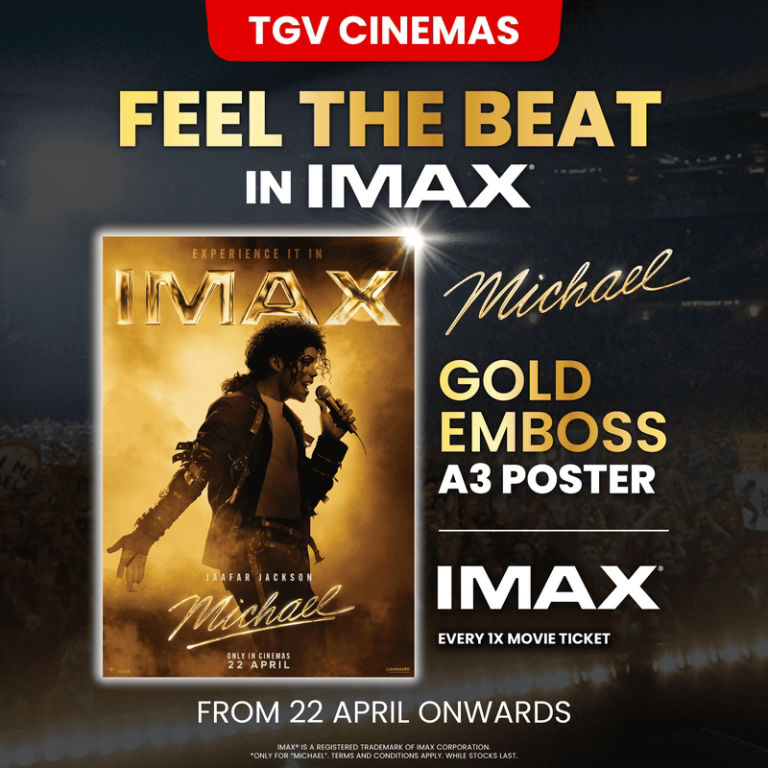 🎩 Moonwalk your way to TGV! Get an EXCLUSIVE Gold Emboss ‘MICHAEL’ IMAX A3 Poster when you: 🎤 Purchase 1 IMAX ticket to ‘Michael’ from 22 April ⭐ While stocks last! 🎬 …