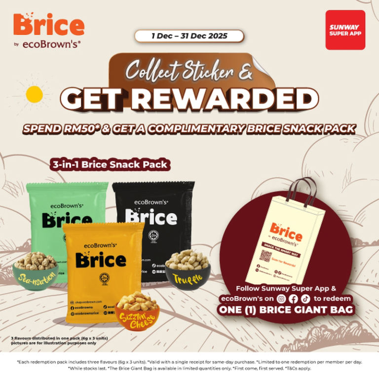 Redeem a complimentary Brice Snack Pack when you spend a minimum of RM50* at Sunway Pyramid! Here’s how to redeem your rewards: 1. Spend a minimum of RM50* in a single receipt 2. Collect Sun…