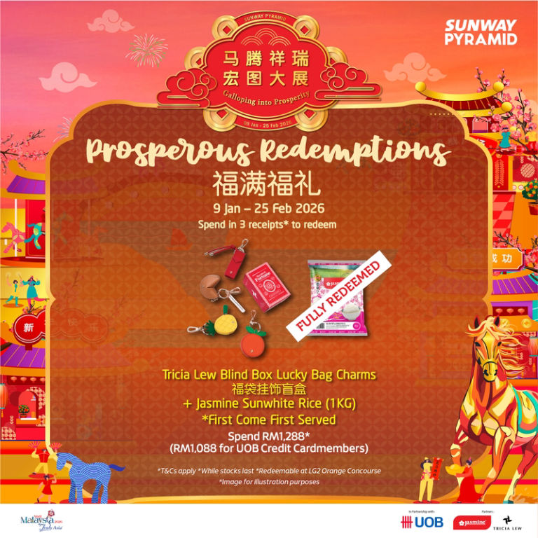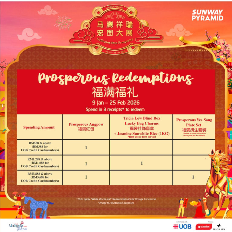 Shop and redeem exclusive Chinese New Year gifts when you spend in Sunway Pyramid. Celebrate the season with prosperity and festive rewards. T&Cs apply.