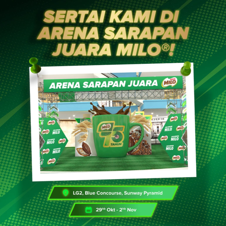 Jom bersedia jadi juara di Arena Sarapan Juara MILOยฎ! Dari aktiviti kreatif lagi aktif, ke koleksi eksklusif, sampai lah ke meet & greet dengan Nadhir Nasar & Erysha Emyra, semuanya ada untuk juara di…