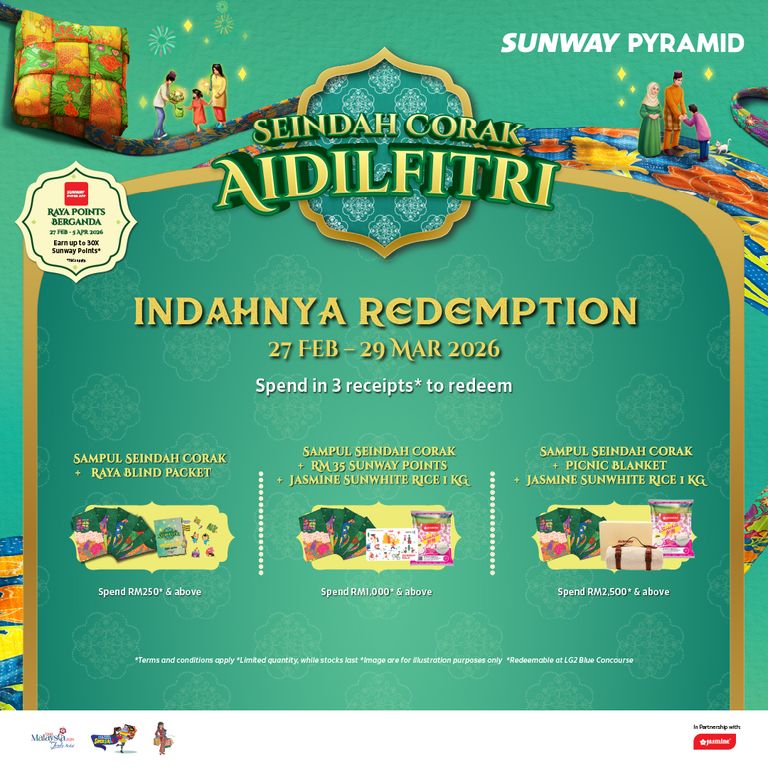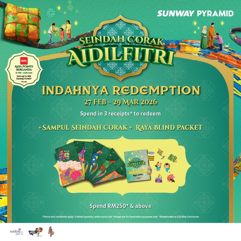 There will be a slew of activities, redemptions and things happening in Sunway Pyramid during the Holy month. Why not come over to berbuka puasa, do your shopping and fully experience the beauty of Seindah Corak Aidilfitri at LG2 Blue Concourse from today till 29 March.
